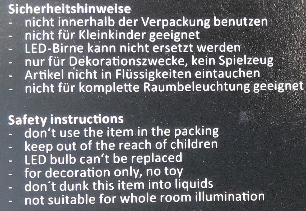 3xAA battery not included, distance LEDs: 10cm