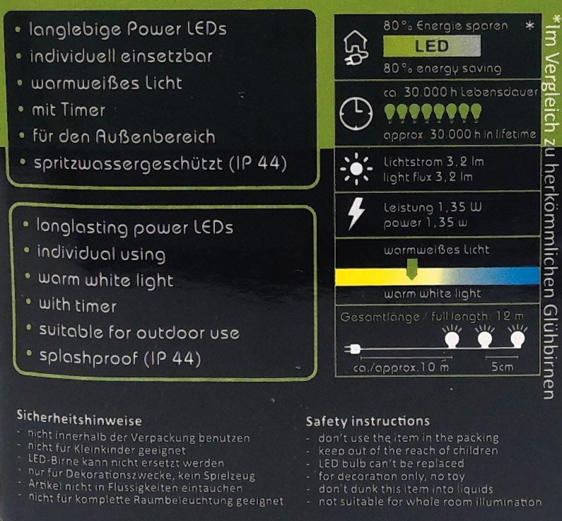 Light chain wire / micro, 10 LED, TIMER, 120cm in