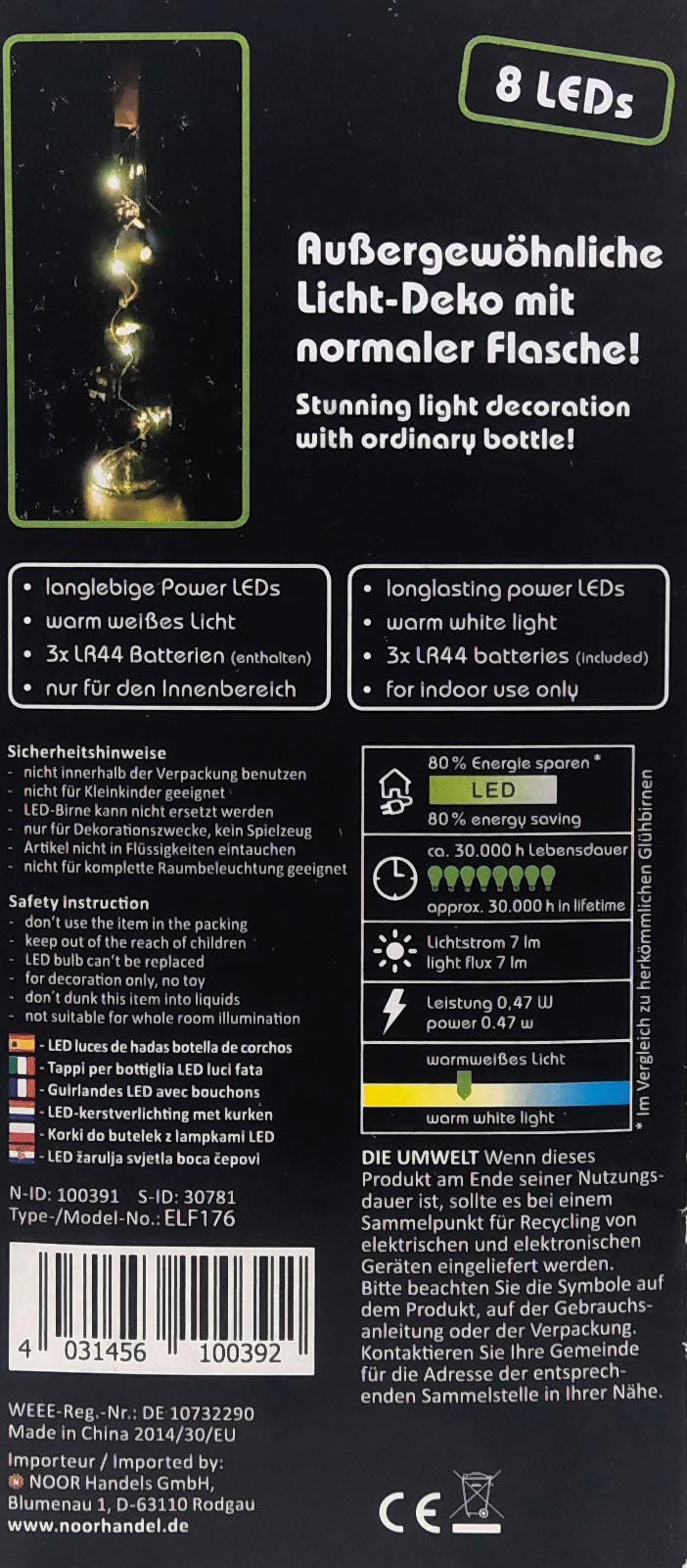 LED-Lichterkette -Weihnacht-, 3f/s., ca. 135cm, m. 10 warmweiße LED´s, Motiv Eng