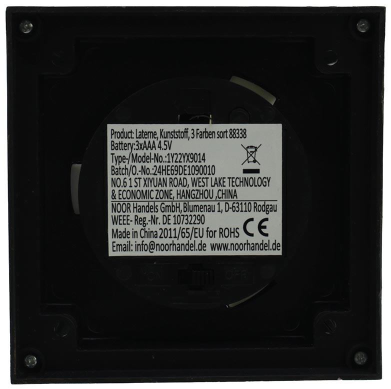 LED lantern, plastic/glass, 10x10x24.5cm