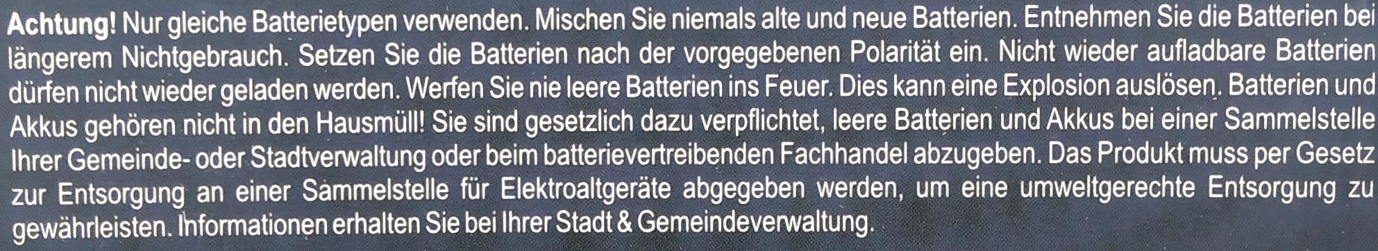 3xAA battery not included, distance LEDs: 10cm